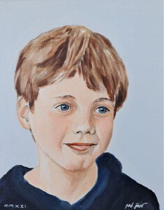 2015Portret van Thomas, mijn oudste kleinzoon. Dit schilderijtje heeft de 5e prijs gewonnen van de Arti-studiecompetitie nr. 244. Een afbeelding is gepubliceerd in het blad PALET nr. 375, januari/februari 2015