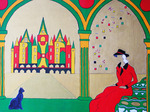 2013Freya de Germaanse Godin, waar vrijdag naar genoemd is met één van haar zwarte katten met op de achtergrond het Walhalle. Verder de bogen van de Blauwe Moskee en elementen van Klimt.